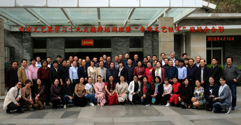 2018年4月10-11日,市文联在临潼区组织召开“西安文艺界学习十九大精神培训班”暨“争做文艺铁军”现场会,会上合影。