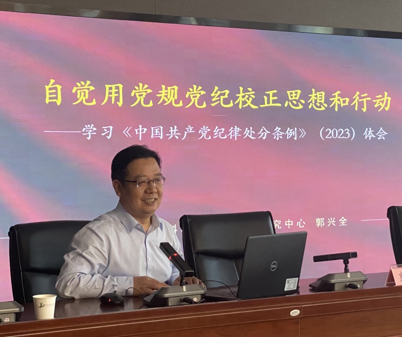郭兴全以“自觉用党规党纪校正思想和行动”为题,梳理了党的纪律建设的百年历程,阐述了党的纪律建设的经验启示,解读了《条例》修订的重要意义、2023版《条例》具体内容,提出了贯彻落实好《条例》的思路举措,对党员干部准确把握《条例》主旨要义和规定要求具有很好的帮助和促进作用。