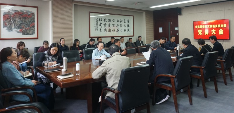 市文联一级调研员王晓林领学了《中国共产党章程》有关章节,一级调研员武振江报告上届总支委员会工作及党费收缴使用情况。党组书记、常务副主席王晓锋宣读市直机关工委有关换届批复,党组成员、副主席张青艳介绍委员候选人基本情况,党组成员、副主席张龙愿主持了会议,会议差额选举产生了新一届中共西安市文学艺术界联合会总支委员会。