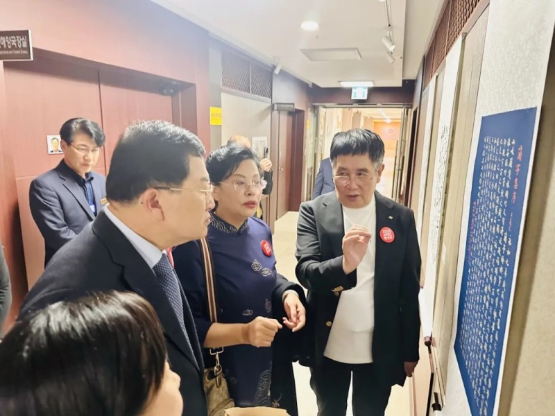随后,西安市文学艺术体育代表团,在首尔拜会了中日韩合作秘书处副秘书长图师执二,中日韩合作秘书处副秘书长颜亮、中国驻韩国使馆公参兼总领事钟洪糯参加会谈,并共同参观了中韩两国书法美术摄影展。