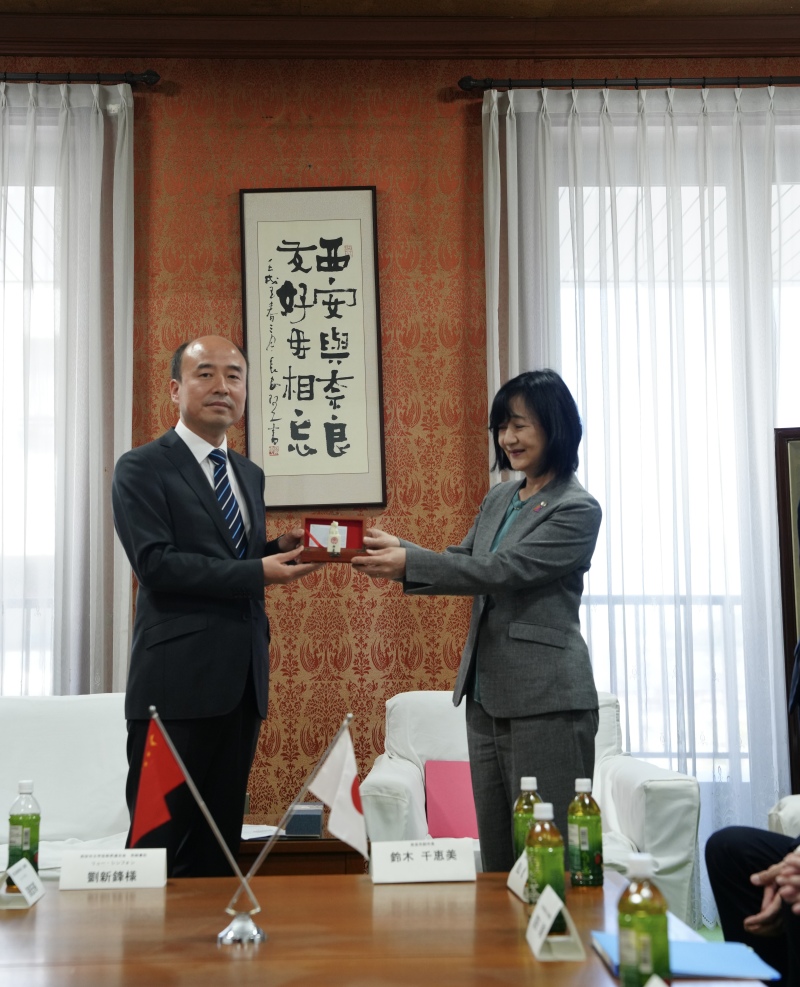 在奈良市政府,西安代表团与奈良市相关部门就开展体育交流活动作了对接。受奈良市长仲川元庸委托,奈良市副市长铃木千惠美出席西安市书画摄影展,并与代表团就双方关注的交流合作问题进行了探讨。