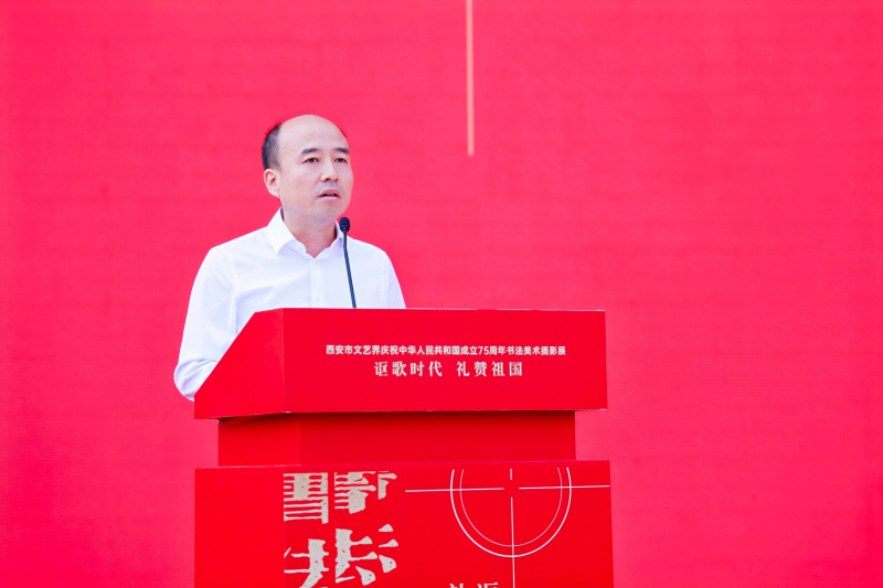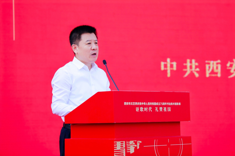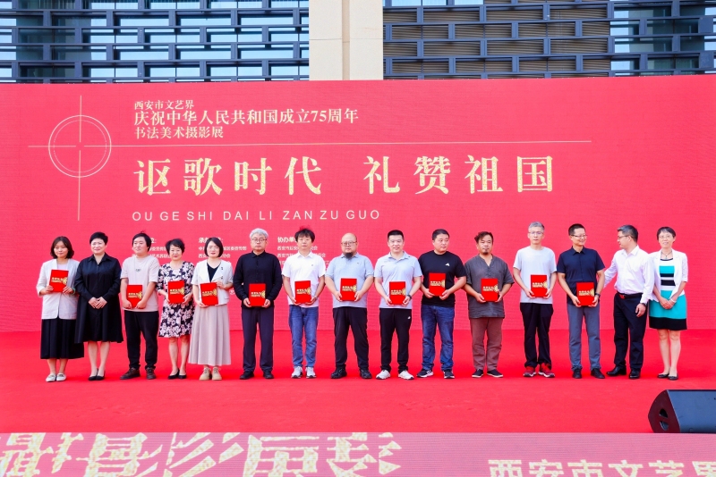 9月27日上午,“讴歌时代•礼赞祖国”西安市文艺界庆祝中华人民共和国成立75周年书法美术摄影展在“一带一路”银发经济产业园隆重开幕。本次展览由市委宣传部、市文联共同主办,旨在以书画摄影艺术的形式,集中展现新中国成立75年来的辉煌成就和时代风貌,集中展现全市广大艺术工作者主动投身“文化兴市”战略的实践中,与时代同步伐、与城市共奋进的丰硕成果,体现了西安文艺界奋进新征程的担当作为和向盛世华诞献礼的爱国情怀!