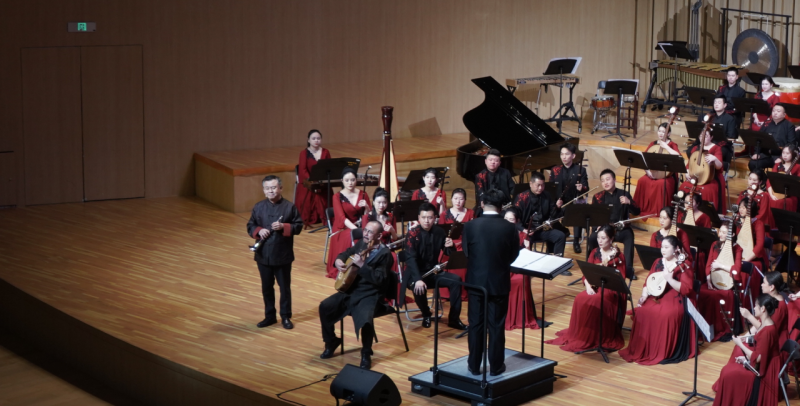 本场音乐会特邀在国内外享有盛誉的陕西广播民族乐团和陕西民族乐团为主力阵容,联袂冯满天、牛建党等国乐大家及青年音乐家晏涵、韩明汐倾情演出,西安音协指挥专委会主任、青年指挥家高伟先生执棒。整场演出传统性和创新性融合,艺术感与时代感拉满,兼具长安烟火气,新年的这份“音乐大餐”诚意满满。音乐会分为上下两个篇章,耳熟能详的经典名曲《春节序曲》将大家带到浓浓的新春年味儿当中,传递出对新年的美好祝福。优秀原创作品《中国节》《五彩窑洞》《青青思念》等让听众耳目一新。音乐会突出民族管弦乐声部丰富、交响多变的同时,又精心安排琵琶独奏、女声独唱等节目,形成大小交替、动静有致的和谐统一。特别是最后登场的牛建党、冯满天两位当今国乐界最活跃的艺术家酣畅淋漓,燃情全场的《信天游随想》,将音乐会推向高潮,形象表达了西安文艺界对优秀中华传统文化创造性转化和创新性发展的时代致敬。音乐会最后在《我的祖国》的深情祝福和《花好月圆》的美好祈愿中圆满结束,全场观众和合至高、热烈响应,表达了人们对古城新春的无限期盼。