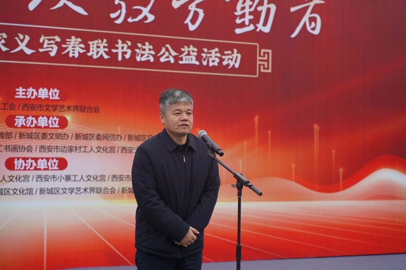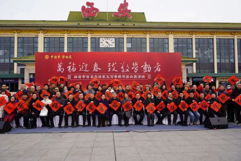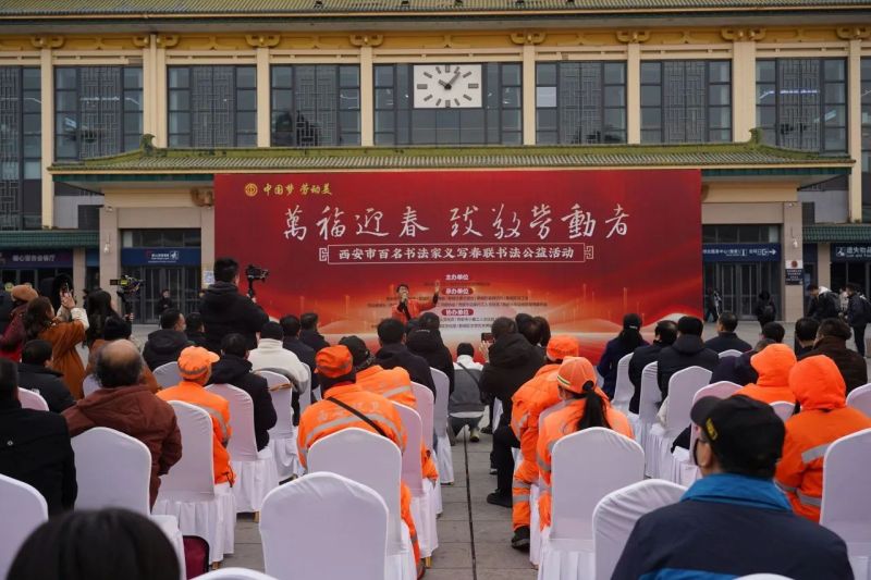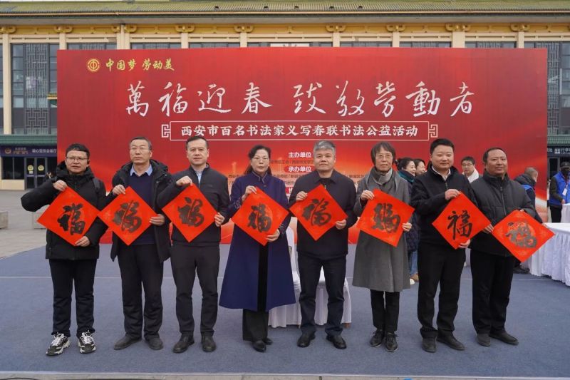 翰墨飘香,万福迎春。1月9日上午,新春佳节即将来临之际,为了贯彻落实党的二十届三中全会精神和习近平文化思想,积极践行市文联开展“文艺六进”志愿服务活动,由西安市总工会、西安市文联联合主办,西安市书法家协会、西安市政协书画院、新城区委宣传部、新城区总工会、边家村工人文化宫等单位承办的“万福迎春 致敬劳动者——百名书法家义写春联书法公益活动”启动仪式在西安举行。