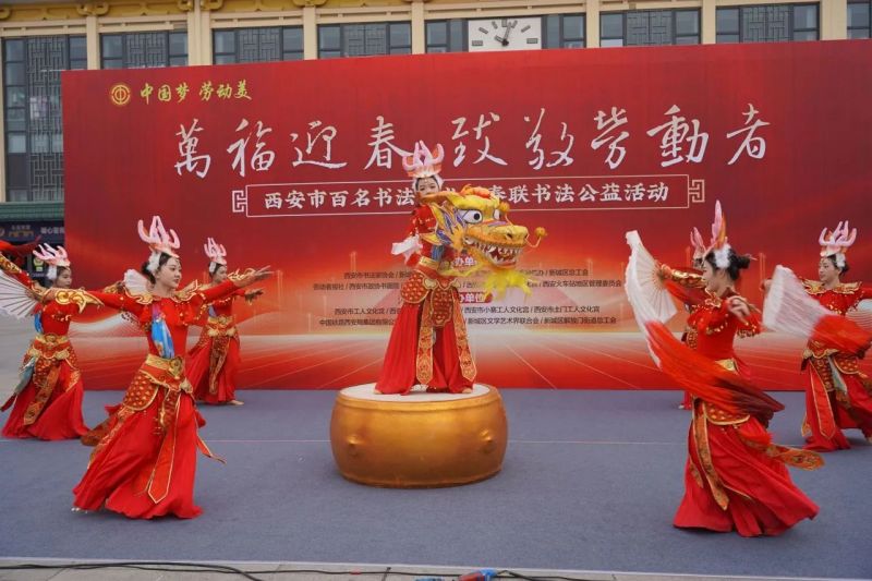 活动开始前,新城区总工会文艺轻骑兵演出队为现场群众带来了精彩的文艺节目舞蹈《九州龙吟》、农民工歌手李志国演唱了歌曲《追逐梦想》。