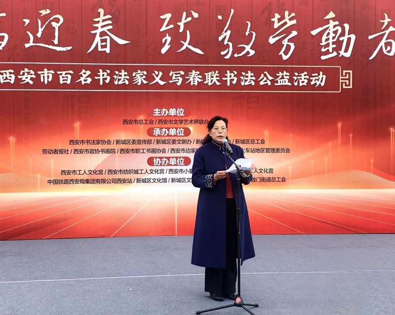 西安市文联副主席、市书协主席石瑞芳指出:“本次义写春联书法公益活动不仅是一项文化盛举,更深刻展现了新时代对劳动者的重视与尊敬。春联不仅传递着对新年的美好祝愿,更蕴含着书法家们对劳动者辛勤付出的崇高敬意和深情厚谊。通过这次活动,我们书法家们要向广大劳动者学习、向生活学习。”