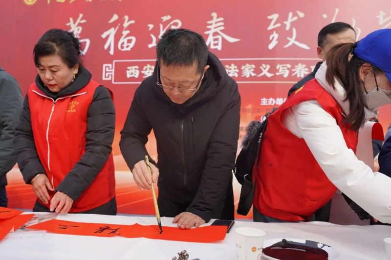 活动现场,书法家们个个笔力雄健、笔锋流畅,引得现场市民阵阵赞叹。一位正准备乘车返乡过年的工人师傅高兴地说:“能带着手写的春联回家真好,更有年味,感觉这才是过年的样子。感谢书法家为我们写春联,让我们感受到了来自大西安的温暖。”