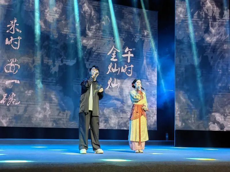 随后开启的文艺展演,堪称一场多元艺术的交融盛宴。南门乐队一首《有一种生活叫长安》率先点燃全场,用旋律勾勒出古城西安的市井烟火;“放歌中国”全国亚军吴梓轩深情献唱《中华情》,以浑厚嗓音诠释家国情怀;民谣歌手崔一乔空灵演绎《天空中的歌》,带来云端诗意。舞台上,舞蹈《鼓声响起的地方》的热烈奔放、秦腔《天女散花》的韵味悠长,尽显传统艺术魅力;辛广、胡红亮朗诵《回延安》,致敬红色经典;双人舞《功勋章》用肢体语言诉说奉献精神。此外,啸雷的方言脱口秀引得全场欢笑,尚友大秦腔团队的《华阴老腔》气势磅礴,古风舞蹈《簪花赋》演绎千年风雅。程渤智与皮卡晨合唱的《长安时辰》、康苗与强镔带来的《家国天下》,更是将现场气氛推向最高潮,传统与现代的碰撞、声韵与舞姿的辉映,为碑林留下浓墨重彩的文艺篇章。