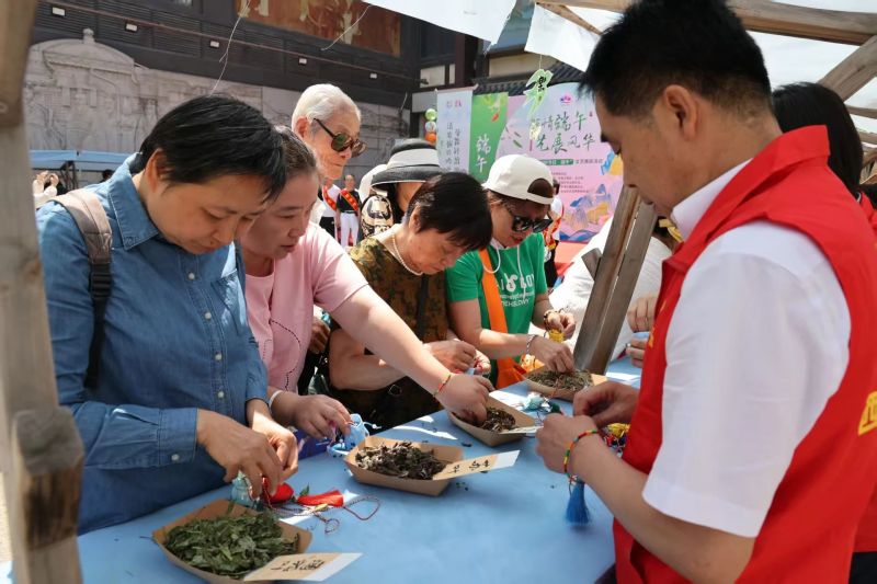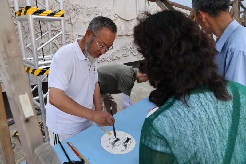 在互动展示环节,现场设置了扇面书画展区和非遗文化展示区,吸引了众多市民驻足观赏。在扇面书画创作及展示区域,书画文艺志愿者们现场挥毫泼墨,以笔墨丹青展现端午文化意象。一幅幅精美的扇面书画作品引得观众纷纷赞叹,现场还安排专人讲解作品创作背景、艺术特点等,让大家在欣赏艺术作品的同时,更深入地了解其背后的文化内涵。