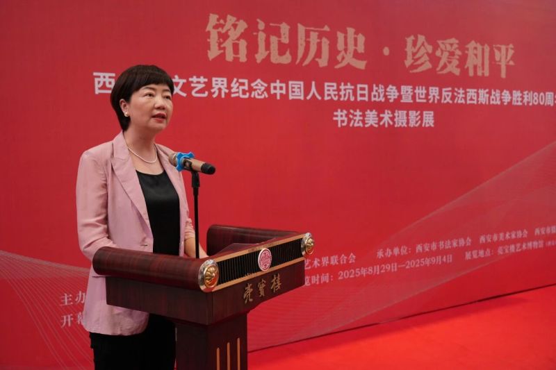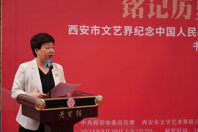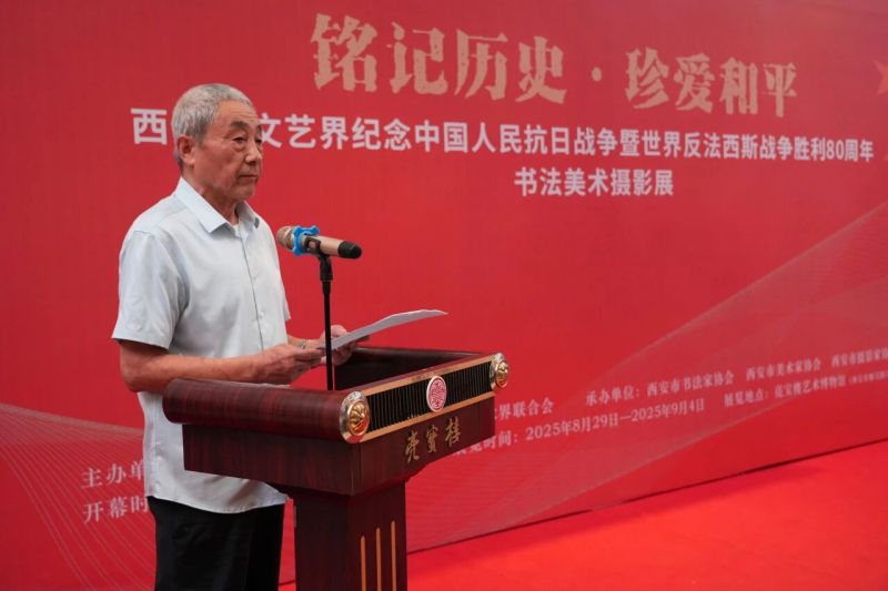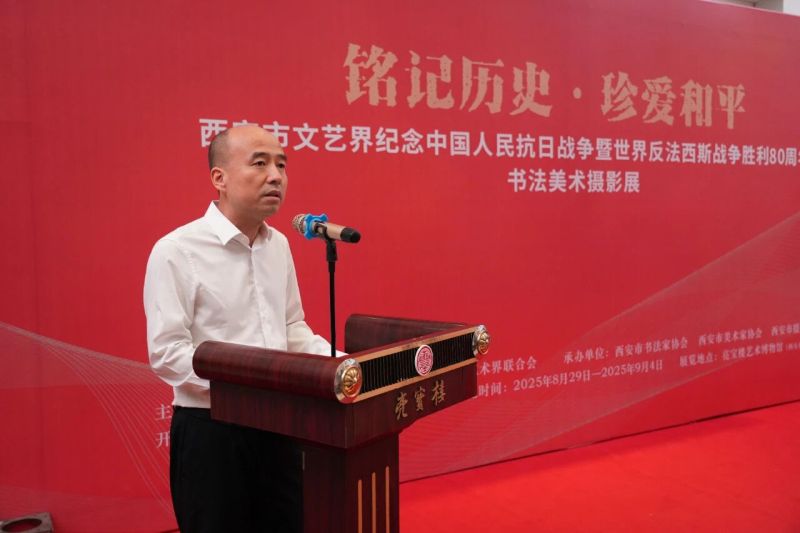 山河铭历史,艺笔敬英雄。8月29日上午,“铭记历史·珍爱和平”西安市文艺界纪念中国人民抗日战争暨世界反法西斯战争胜利80周年书法美术摄影展开幕式在亮宝楼隆重举行。
