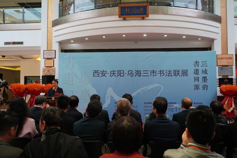 书荟宏章歌盛世,翰墨飘香润古城。10月11日上午,“三城墨韵 书道同源” 西安-庆阳-乌海三地书法联展在西安亮宝楼开幕。这场跨地域的书法盛会,不仅集中展现了三地书法艺术的创作成果,更搭建起文化交流的桥梁,为传承与弘扬中华优秀传统文化注入新活力。