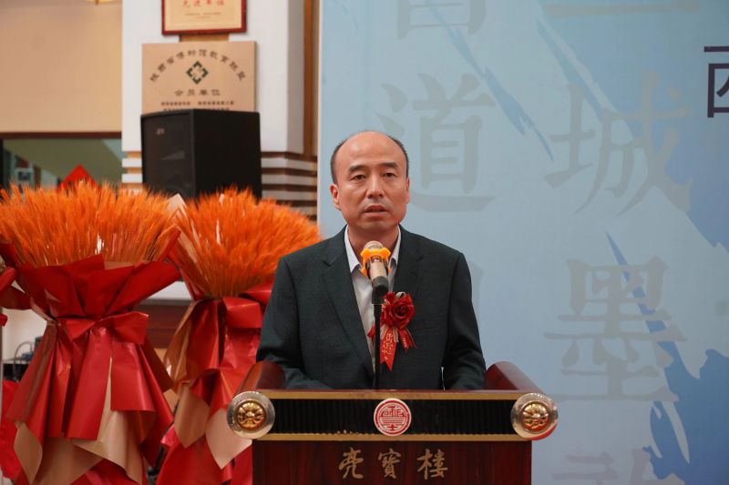 西安市文联党组书记刘新锋讲话并宣布开幕,他指出,文化交流,贵在互鉴,通过此次联展为三地书法界搭建了一个宝贵的跨省交流互鉴协同发展的平台,为增强文化自信,建设社会主义文化强国贡献我们书法界的力量。