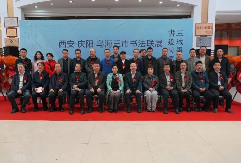 开幕式上,三地书法界代表、文艺工作者及爱好者齐聚一堂,共赴这场文化之约。出席活动的领导、嘉宾有:西安市文联党组书记刘新锋、西安市文联党组成员、副主席蔡鑫,庆阳市文联党组书记、主席康建华;西安市文联副主席、西安市书协主席石瑞芳,西安秦砖汉瓦博物馆馆长任军宜,西安市书协副主席董建平、张之、王江、杨小琪、呼延小舟、高拥军、鲁建、刘勇、金鑫及协会理事、会员;庆阳市书协主席张建昕,副主席黄风贤、马立武,理事杨浩奇、刘艺鸿,副秘书长李强济,文联干部郭春霞;乌海市书协主席雷平,理事陈蜀军,青年书协副主席兼秘书长郑卫东等。此外,西安、庆阳、乌海三地200余名书法工作者共同参与开幕式,见证这一重要时刻。开幕式由西安市书协副主席兼秘书长王江主持。