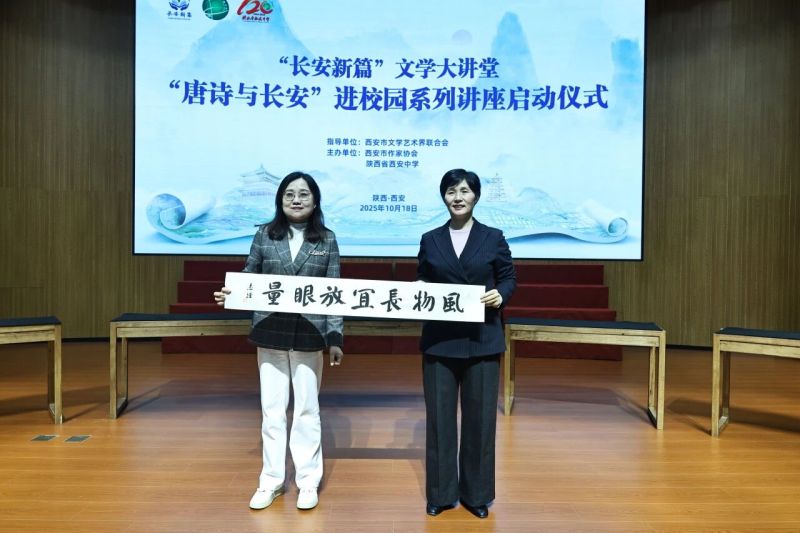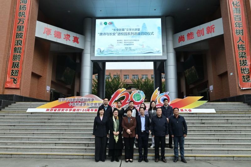 古韵长安诗韵浓,文化传承进校园。为全面推进西安“文化兴市”战略实施,加快促进新时代西安文艺高质量发展,打造西安特色唐诗文化品牌,10月18日,由西安市文学艺术界联合会指导,西安市作家协会与西安中学联合主办的“长安新篇”文学大讲堂——“唐诗与长安”进校园系列讲座在西安中学阶梯报告厅启动。西安市文联党组成员、副主席蔡鑫,西安市作协副主席杨莹、高亚平,西安中学副校长胡杰、左宏莉等出席活动。