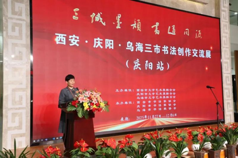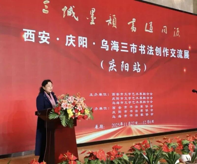 乌海市书协理事、乌海市女子书协副主席尚凤莉表示,乌海始终珍视与西安、庆阳的文化联结,更感恩能以书法为桥,走进庆阳这片文化厚土,汲取农耕文明的人文养分,学习各位同仁的精湛技艺。期待以本次联展为契机,继续深化三地文化交流,互学所长、互补所短,让书法艺术成为三地携手同行、共谱文化新篇的重要纽带,让中华优秀传统文化在北疆与陇东、关中的交融碰撞中,绽放出更加璀璨的光彩。