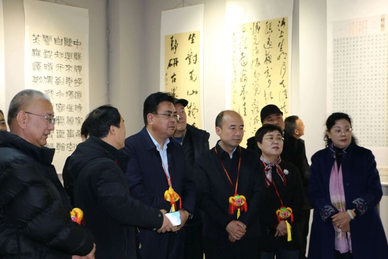 西安市文联党组书记刘新锋,西安市文联副主席、西安市书协主席石瑞芳、西安市书协副主席兼秘书长王江、西安市书协副主席鲁建、西安市书协副秘书长霍明达及庆阳市书协会员、书法爱好者共百余人参加了当日开幕式。