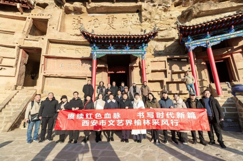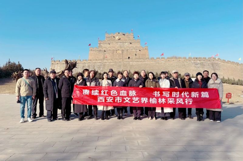 为全面贯彻党的二十届四中全会精神,深入学习习近平文化思想,推动文艺创作扎根红色沃土、汲取时代养分,12月8日—12日,由西安市文联党组成员、副主席蔡鑫带队,来自西安市作协、书协、美协、音协、摄协、诗词学会、金石诗歌学会、中国画研究会......以及部分区县文联代表等多个领域的25名文艺工作者,赴榆林、延安开展“赓续红色血脉・书写时代新篇”主题采风活动。