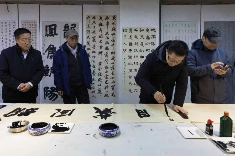 当晚气温骤降,但西安与延安文联文艺交流活动现场依然气氛热烈,20多名书画家齐聚一堂,挥毫泼墨,佳作频出。并联手创作《闹春图》,笔墨间既融入了黄土高原的雄浑底蕴,又饱含着对新春的美好期许,将此次跨地域文化交流推向高潮。