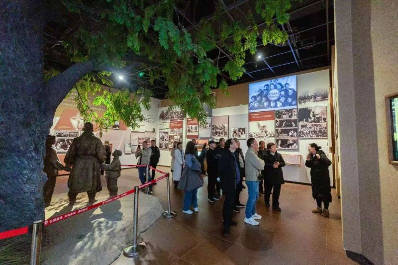 随后采风团来到延安革命纪念馆。延安革命纪念馆是中国革命历史的博物馆、延安精神的传承地、爱国主义教育的主阵地、红色文化传播的重要窗口,是中国革命的重要出发点——不仅见证了中国共产党从幼稚走向成熟的蜕变,更孕育了光照千秋的延安精神。泛黄的史料、珍贵的文物无声地诉说着峥嵘岁月,小青马标本承载的转战陕北记忆、木质小炕桌见证的《沁园春・雪》创作历程,让采风团成员深刻体悟到延安精神的精神内核与实践伟力。