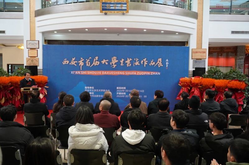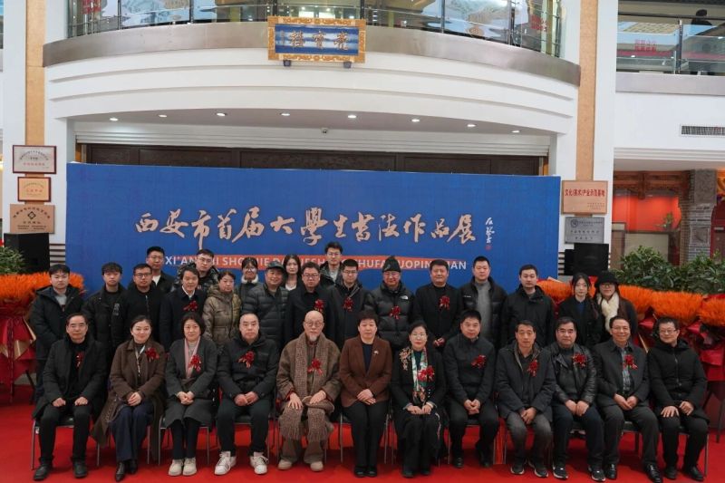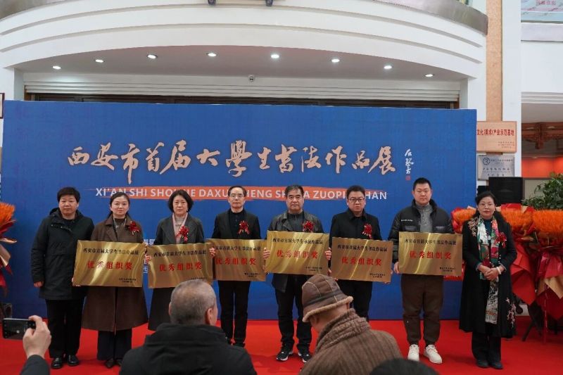 1月10日上午,西安市首届大学生书法作品展开幕式在亮宝楼成功举办。西安市文联党组成员、副主席蔡鑫,陕西省书法家协会名誉主席陈建贡,西安市书法家协会主席石瑞芳,陕西省书法家协会副主席杨小琪、姜彦卓,西安市书法家协会副主席张之、周伯衍、呼延小舟、鲁建、刘勇、金鑫等来自社会各界的书法爱好者200余人参加了活动。活动由西安市书法家协会副主席兼秘书长王江主持。