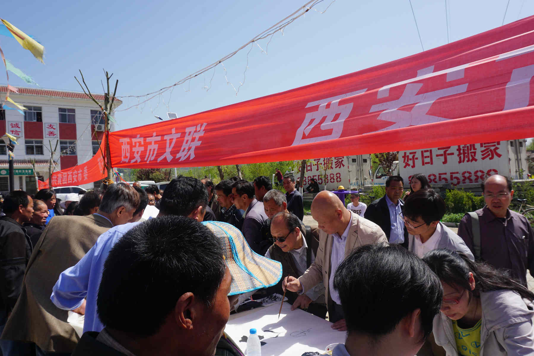 4月15日上午,西安市文化科技卫生“三下乡”集中服务活动在蓝田县焦岱镇柳家湾村村委会广场隆重举行,本次活动的主题是“走进人民、讴歌人民、服务人民”。市文联组织市书协、市美协、市摄协艺术家为当地群众创作书画作品、拍摄全家福、寿星照。党组书记李伯钧,副主席陈兆朋参加了活动。