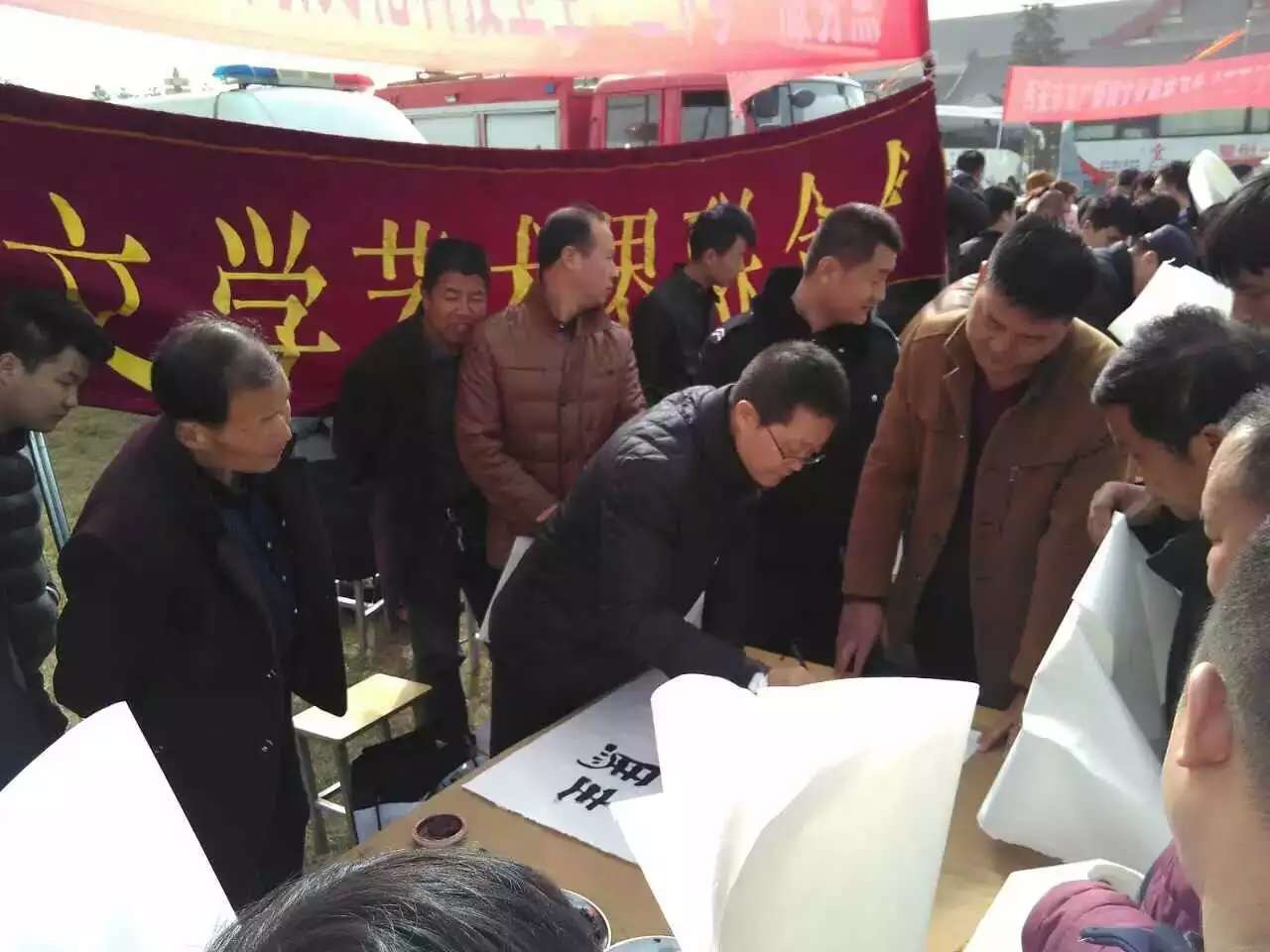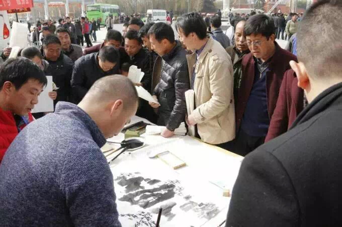 2月19日上午,西安市2016年文化科技卫生“三下乡”集中服务活动在周至县楼观台宗圣宫广场举行。市文联组织艺术家为群众书写名言警句、家规家训,创作作品,拍摄、打印寿星照和全家福。市文联还被市上评为“三下乡先进单位”。
