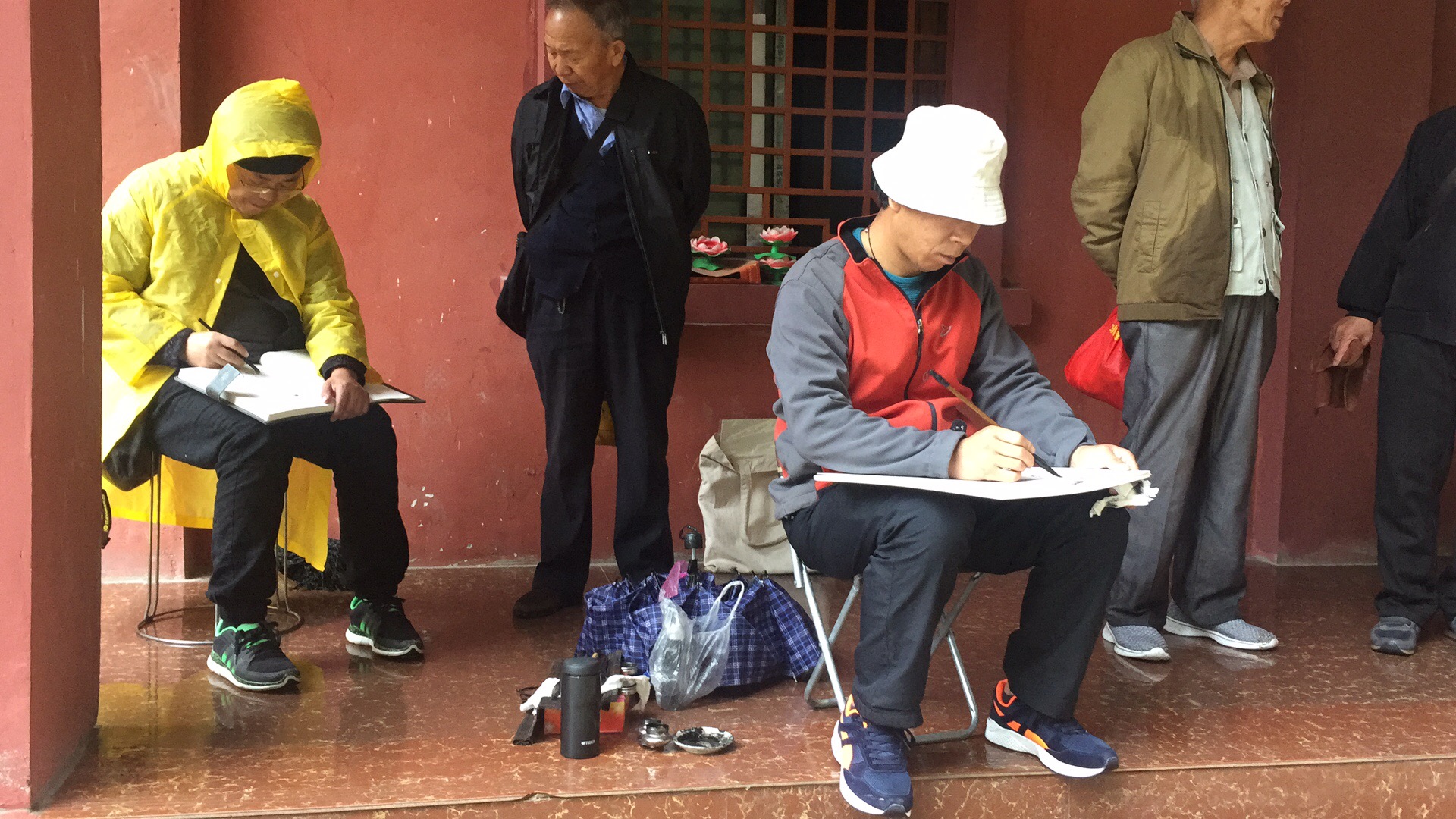 画家们按捺不住迫切的心,找到避雨处坐下来描摹着眼前的景象;摄影家们不用说了,照相工具一路上几乎没离过手。