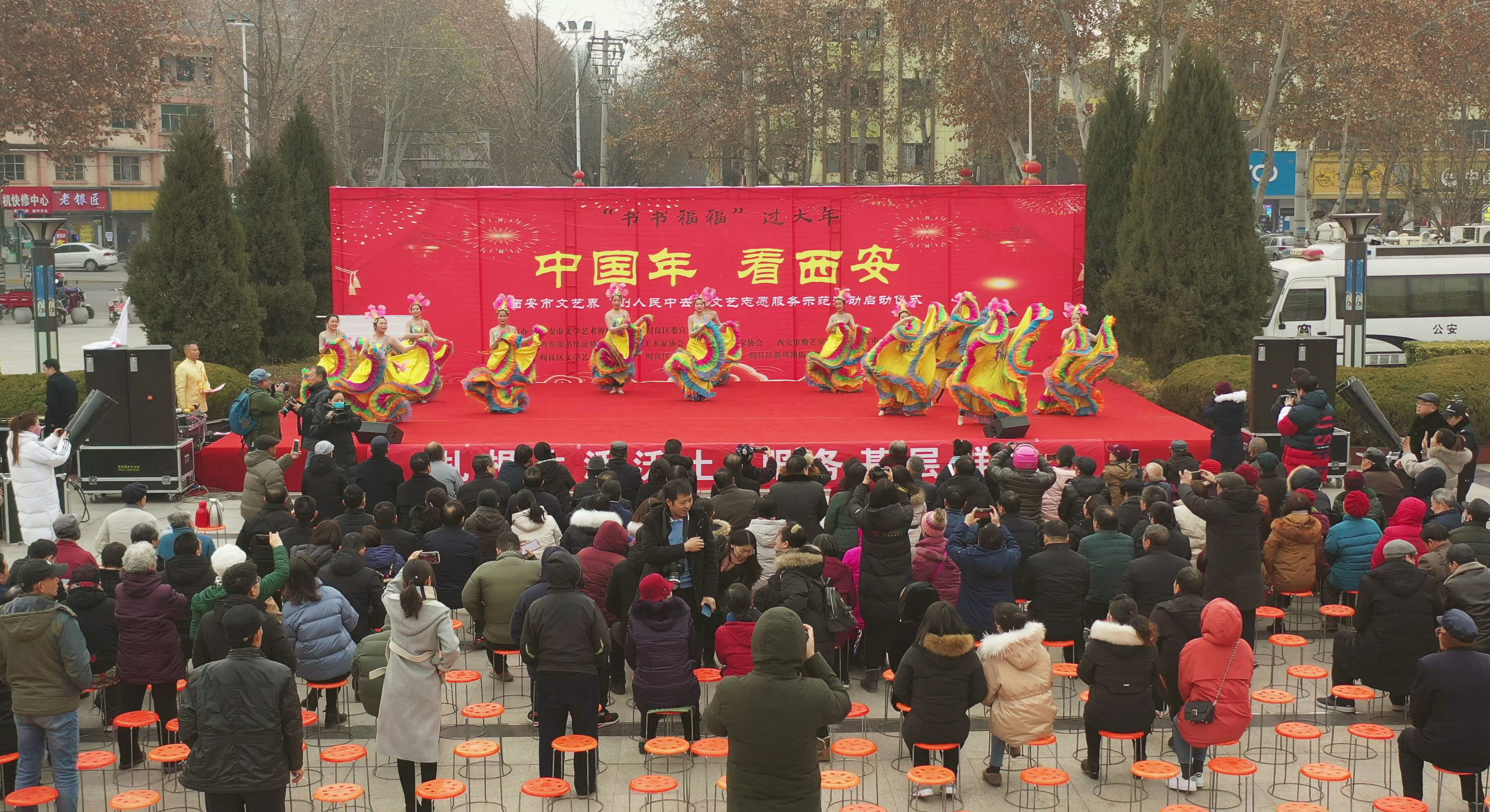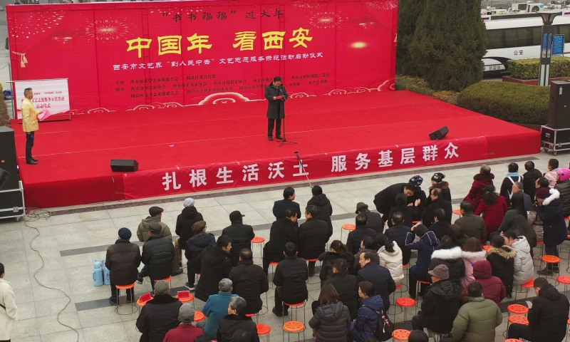 1月2日,“中国年▪看西安”“书书福福” 过大年“西安市文艺界‘到人民中去’文艺志愿服务示范活动”启动仪式在阎良区千禧广场举行。