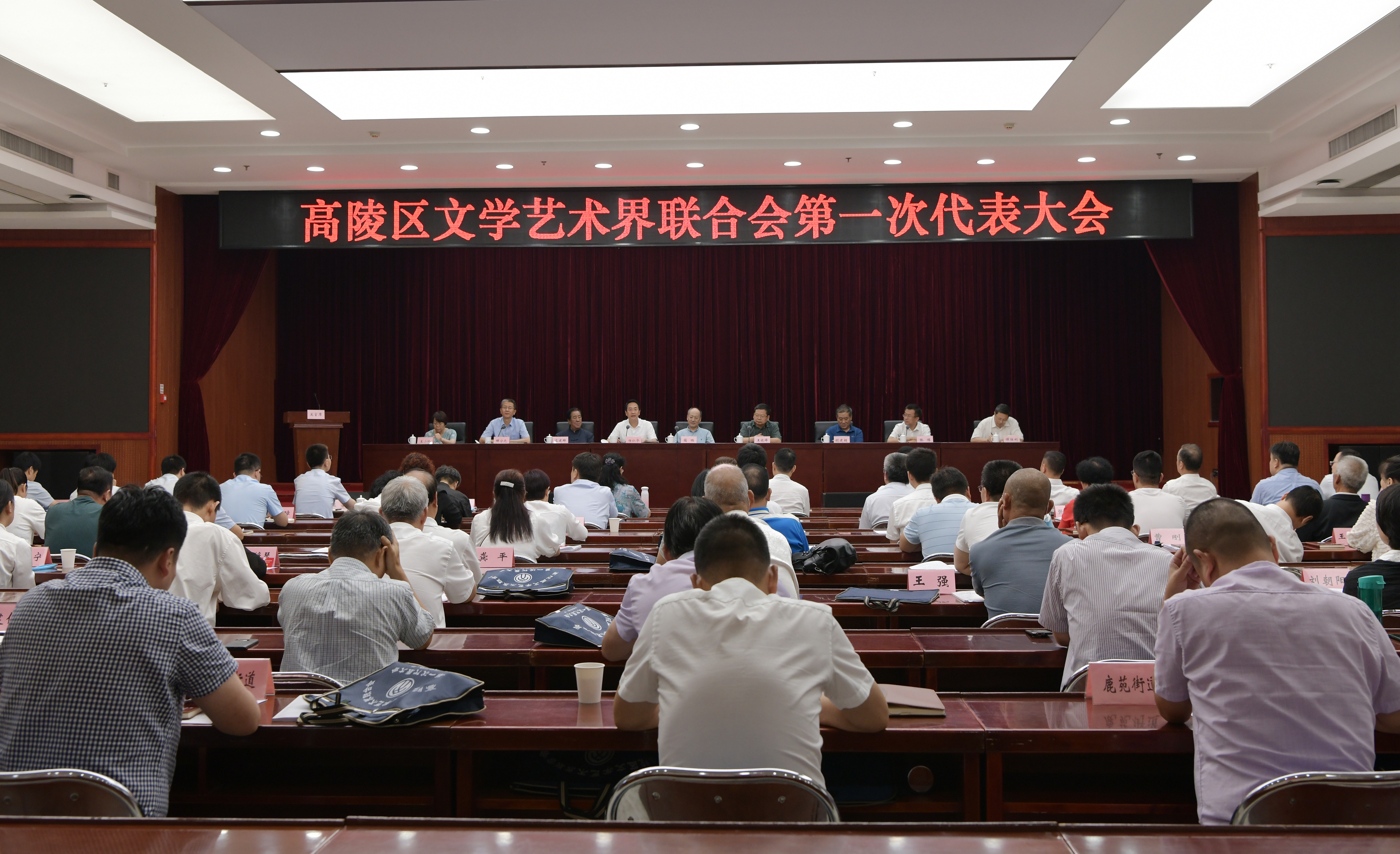 大会分两阶段进行。第一阶段的会议传达学习了习近平总书记来陕考察重要讲话重要精神,听取了我区第一次文代会筹备工作报告,审议通过了《高陵区文学艺术界联合会章程(草案)》和《高陵区文学艺术界联合会第一次代表大会选举办法(草案)》;选举产生了高陵区文学艺术界联合会第一届委员会委员、副主席、主席团成员,区委宣传部常务副部长雷彬当选区文学艺术界联合会第一届委员会主席。