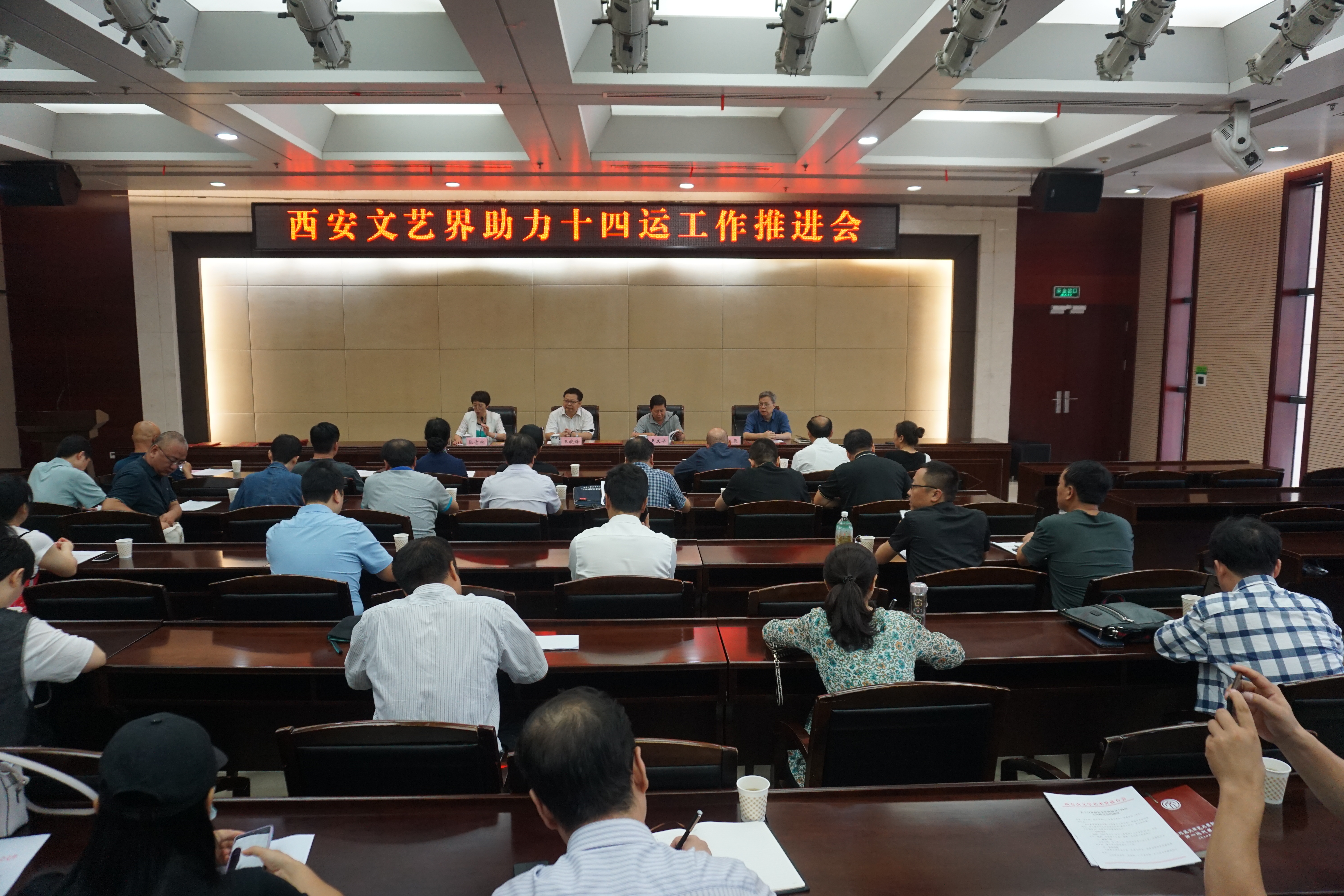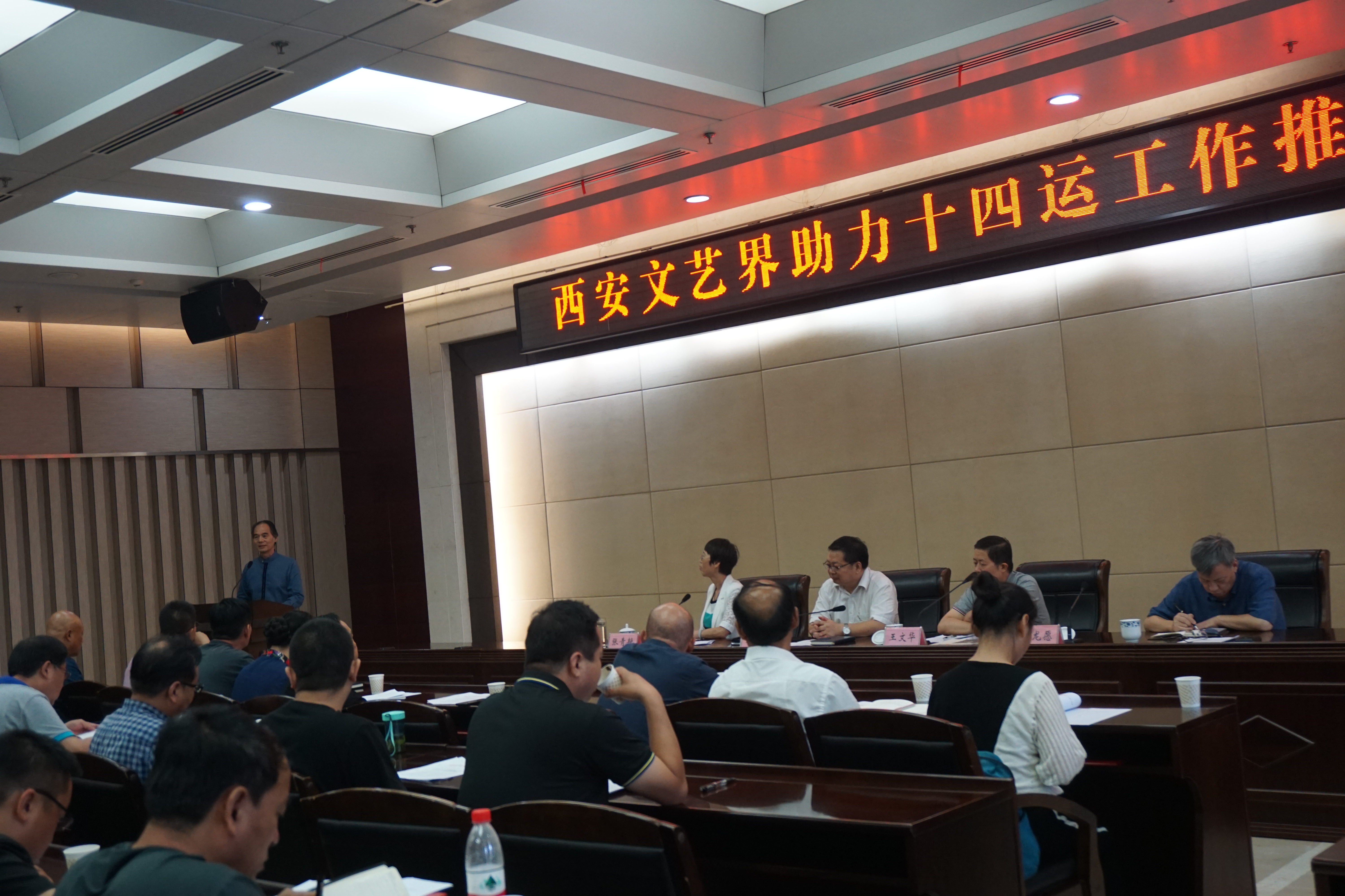 文联党组书记、常务副主席王晓锋在讲话中指出:一要统一思想,进一步认清办好十四运的重大意义;二要提高认识,进一步增强办好十四运的政治责任感;三要围绕中心,切实以十四运为牵引抓好文艺和文联工作。要求大家进一步增强政治责任感和历史使命感,一手抓肃清赵正永流毒和以案促改工作及市委巡察整改工作,一手抓十四运筹办工作推进,坚持把肃清赵正永流毒和以案促改工作及市委巡察整改工作与十四运的筹办推进结合起来,统筹兼顾,两手抓、两不误、两促进,真正把整改成果转化为改进作风、推动工作、加快发展的实效,转化为高质量发展和建设国家中心城市的强大动力,转化为办好十四运的思想根基,进一步振奋精神、坚定信心,以昂扬的斗志、饱满的热情、扎实的工作,全力为十四运盛会营造浓厚文明氛围。要牢固树立“一盘棋”思想,进一步发挥特色优势和组织优势,发挥文艺事业对人民理想、精神和心灵的引领、熏陶作用,为提升城市文明道德内涵、推进精神文明建设贡献力量,让“尚德”成为西安的城市品格,让文明遍地开会,确保第十四届全运会办成一届体育盛会、民生盛会、文化盛会。