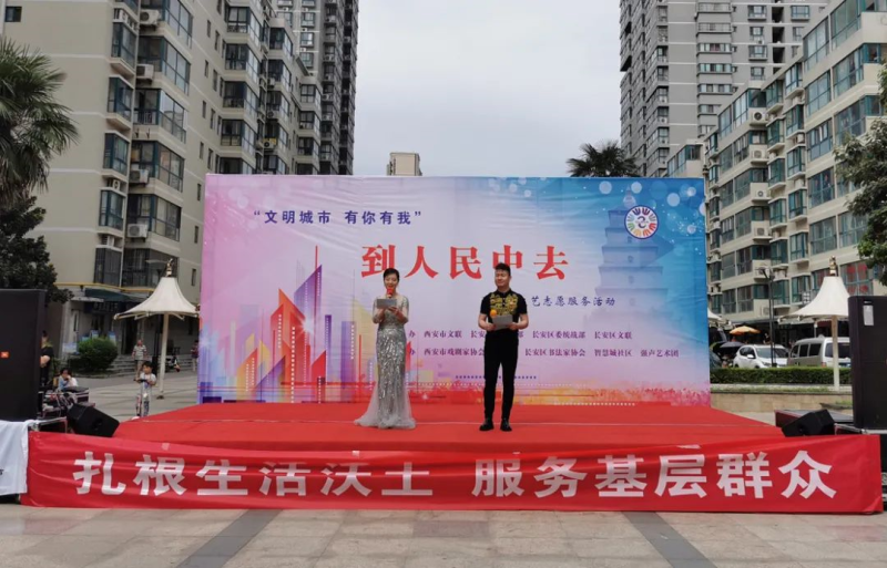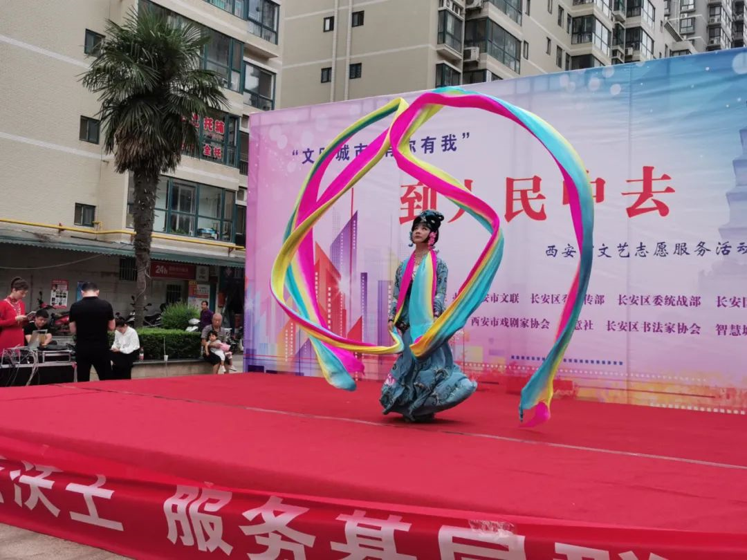 在接下来的演出活动中,西安市戏剧家协会及三意社的演员老师们为大家带来《杨门女将》《周仁回府》《打镇台》《秦腔变脸》、独角戏等精彩的文艺节目,体现了艺术家们扎根生活沃土,服务基层人民的艺术理念。精彩的节目吸引了智慧城及周边居民朋友们争相观看,演员们不时走下舞台,与观众们互动,现场不时响起热烈的掌声。