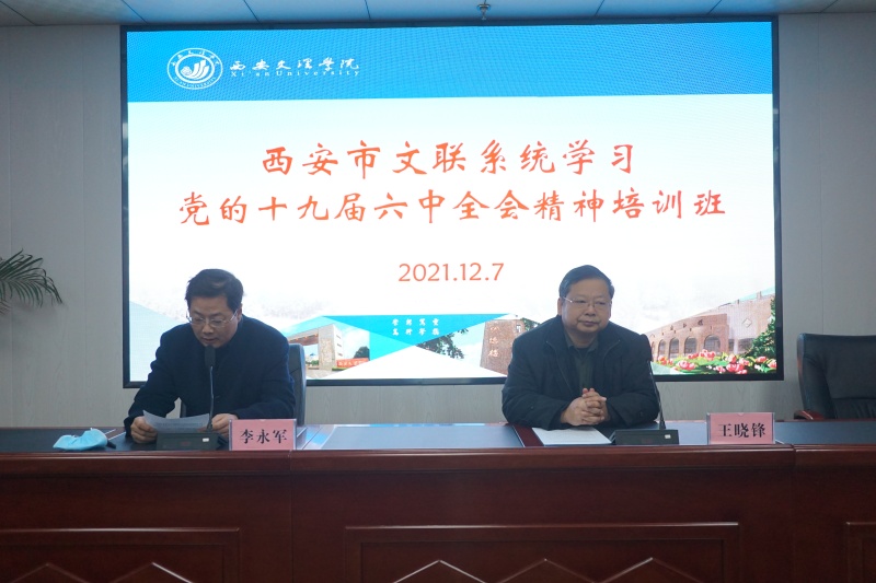为认真落实中央、省委、市委有关文件要求,深入学习贯彻党的十九届六中全会精神,同时进一步学习贯彻习近平新时代中国特色社会主义思想、习近平总书记“七一”重要讲话精神、习近平总书记2021年来陕考察重要讲话重要指示精神,经市文联党组研究决定,结合市文联系统工作实际,12月7日至9日,由机关党总支牵头,在西安文理学院(高新校区)举办了文联系统学习党的十九届六中全会精神培训班,市文联机关全体干部、事业单位处级以上领导干部和各文艺协(学)会拓展型党支部代表共50余人参加。