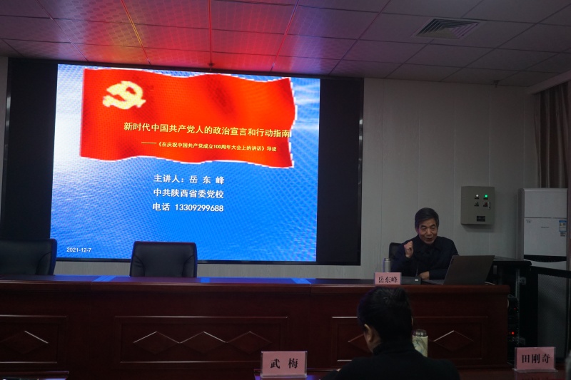 12月7日上午,陕西省委党校岳东峰教授为大家带来了题为《新时代中国共产党政治宣言和行动指南——习近平总书记在庆祝中国共产党成立100周年大会上的讲话及来陕考察重要讲话重要指示精神解读》的授课,带领大家围绕重要讲话原文,深刻体悟党百年来矢志践行初心使命的艰苦伟大,激励大家更好肩负起共产党人的历史使命;带领大家认真回顾了今年习近平总书记回陕足迹,学习了习近平总书记对谱写陕西高质量发展新篇章的各方面指示。