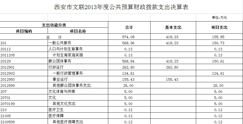 2013年度公共预算财政拨款支出574.08万元,其中:基本支出418.23万元,项目支出155.85万元。既包括使用当年从市级财政取得的财政拨款发生的支出,也包括使用以前年度财政拨款结转和结余资金发生的支出。