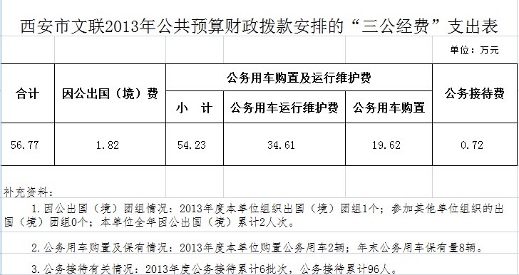 西安市文联2013年公共预算财政拨款安排的“三公经费”支出表